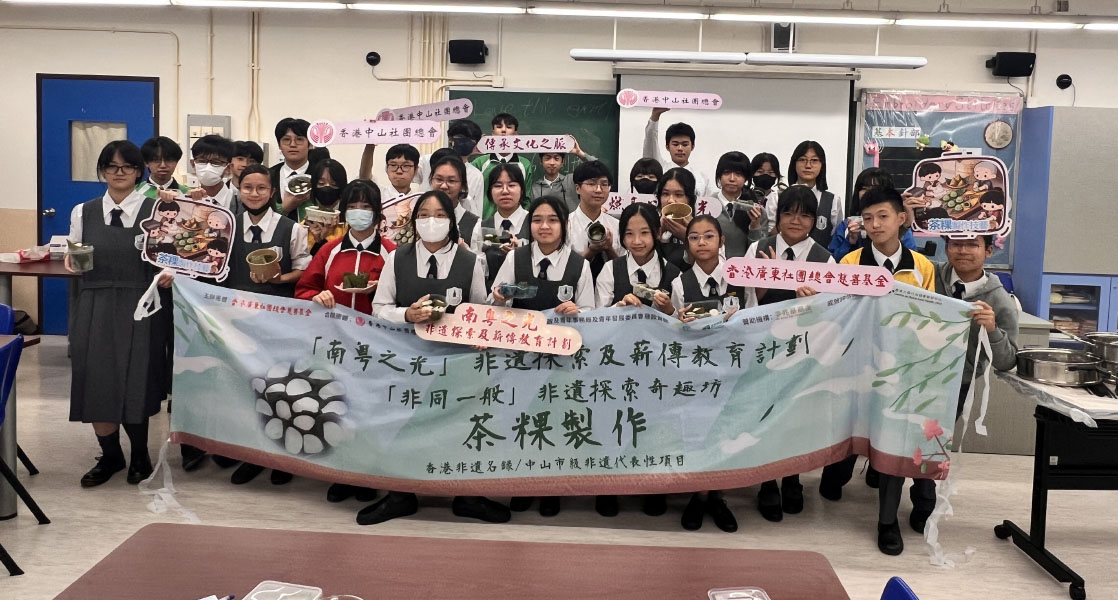 在香港民政及青年事務局及青年發展委員會「民青局青年正向思維活動資助計劃(2025-27)」的撥款資助下,由香港廣東社團總會慈善基金、香港廣東社團總會聯同香港中山社團總會等10間粵籍社團共同舉辦的「南粵之光」非遺探索及薪傳教育計劃,致力把富有嶺南特色的非遺文化帶進香港校園,讓非遺技藝做青年人鞏固身心健康、聯結社群、擁抱中華文化的橋樑。 其中,香港中山社團總會精心策劃,將中山極具代表性的非遺項目--「茶粿製作技藝」引入校園,為香港青少年打開一扇認識中山民俗文化的窗口。項目於2025年10月展開,先後走進嘉諾撒聖心書院、曾壁山(崇蘭)中學、東莞工商總會劉百樂中學、道教聯合會圓玄學院第二中學及福建中學(小西灣)五間中學,透過課堂教學與實作體驗,讓學生近距離接觸非遺技藝。 活動中,導師從茶粿的歷史源流、文化寓意講起,並親自示範和教授製作技藝。同學們在揉粉、包餡、塑形的過程中,細細體會手作的溫度與耐心,亦在互相合作中加深交流與默契。對學生而言,學習茶粿製作不僅是品味一口傳統美食,更是一次走進中山非遺文化、感受人情味與文化傳承的珍貴體驗。透過「南粵之光」計劃,希望將茶粿這份承載鄉情與祝福的味道,在校園中延續與傳承。