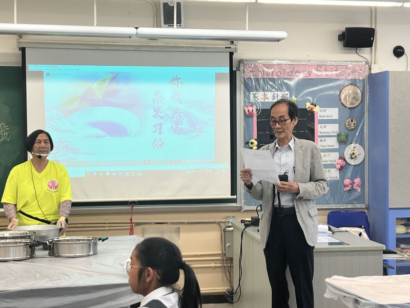香港廣東社團總會常務副主席、香港中山社團總會總監簡植航MH表示非常高興能與同學一同體驗茶粿製作的樂趣。