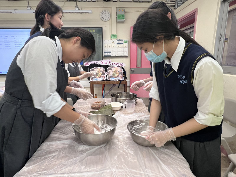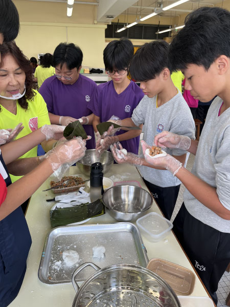 同學在導師指導下學習揉粉、包餡、塑形